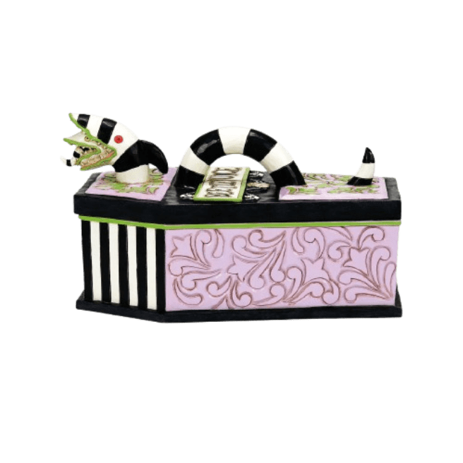 Introduce a touch of whimsy to your decor with the Beetlejuice Trinket Box. This enchanting piece captures the quirky spirit of the beloved character, making it perfect for storing your small treasures or as a charming display item. Ideal for fans and collectors alike, it brings a playful nod to the cult classic. Elevate your space with this delightful trinket box that celebrates individuality and fun.